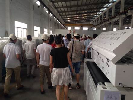 2015年7月6日,浙江省門業(yè)協(xié)會(huì)來我司參觀考察在廣東省門業(yè)協(xié)會(huì)的陪同下,蒞臨佛山泰上機(jī)械考察。泰上機(jī)械董事長胡滿硯先生,總經(jīng)理?xiàng)罨ㄅ亢吞┥蠄F(tuán)隊(duì)一起迎接各位領(lǐng)導(dǎo)及各門企負(fù)責(zé)人,先后參觀了泰上機(jī)械廠區(qū),生產(chǎn)車間,研發(fā)車間及正在施工的二期廠房,隨后一期探討行業(yè)新工藝,木門行業(yè)新的發(fā)展前景,浙江考察團(tuán)給予泰上機(jī)械高度評(píng)價(jià)。