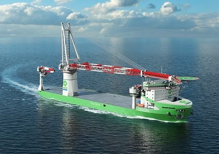 總長216.57米,寬49米,型深16.8米,航行吃水8.5米,操作吃水10.5米,設計航速14節,有效甲板載荷25370噸,配備了大噸位全回轉重吊,吊高最大達170米,配備LNG雙燃料主機,具有LNG冷能再利用,熱能回收功能,同時配備了DP3定位系統和八點系泊,兩種定位系統可滿足不同水深的作業需要。主要用于海上風電場的塔身安裝和平臺拆裝。